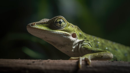 Green anole close-up. A small reptile in bright green color. Generative AI