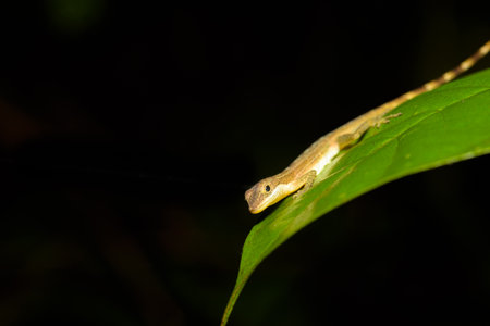 Cute lizard Anolis limifrons on green leaf, Refugio de Vida Silvestre Cano Negro, Costa Rica wildlife
