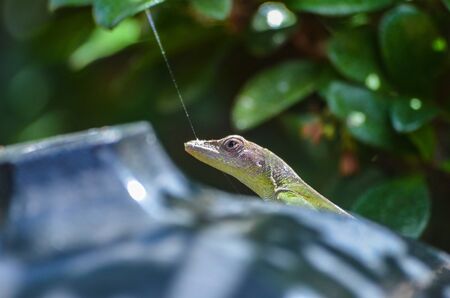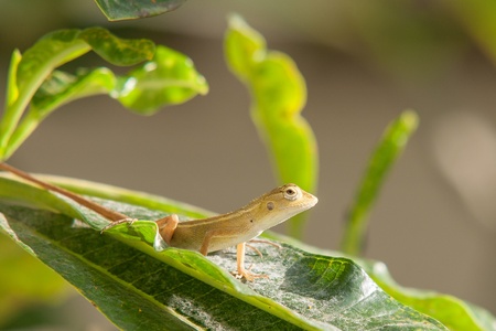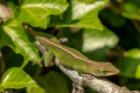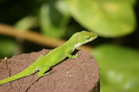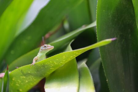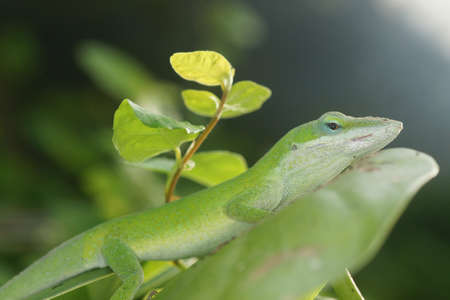 Green Anole Lizard Anolis carolinensis in Garden Shallow DOF