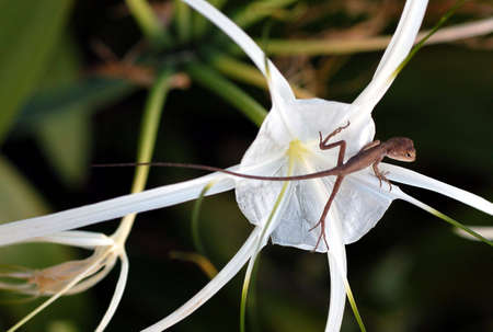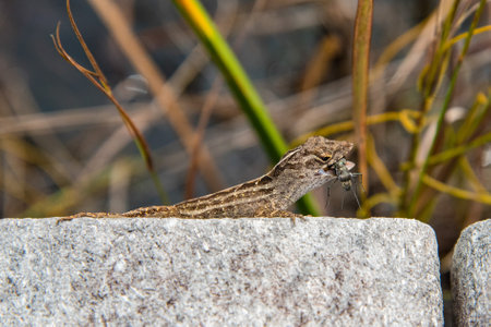 Small lizard with a big prey in his mouth, Everglades NP, USA