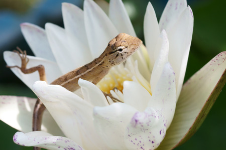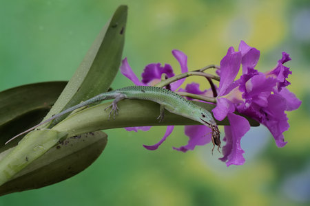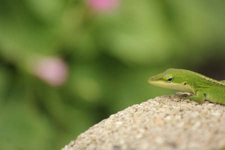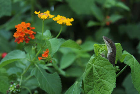 Green Anole Lizard Anolis carolinensis on Lantana Flower