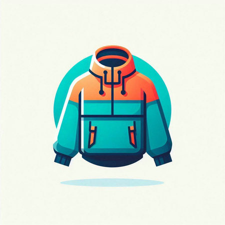 Winter jacket vector illustration in flat style. Winter jacket with hood.