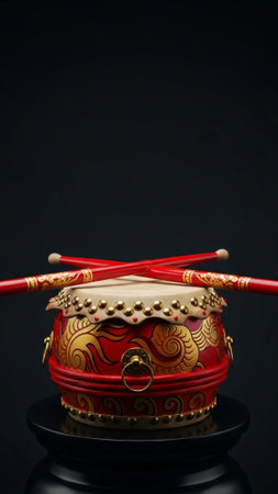 diorama of a detailed Japanese taiko drum with wooden sticks placed nearby, soft spotlight highlighting the drum's texture, dark background, close-up view, japanese culture, cultural item, photorealistic --chaos 10 --ar 1:1 --v 6.1 Job ID: b428bcaf-bfd9-4ff7-9468-edd71e6a681a