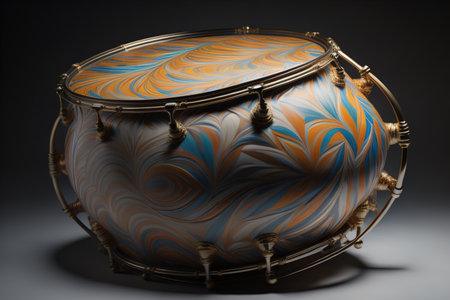 Drum, music instrument, blue background, design, dark, background, flat lay, moody, minimal, indian