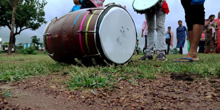 AMRAVATI, MAHARASHTRA, INDIA - SEPTEMBER 24: Unidentified group of young people celebrating Festival in park by playing drums with music.