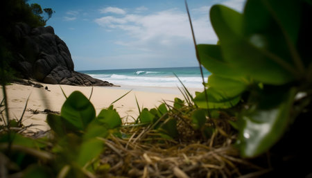 Hidden beach view through tropical vegetation