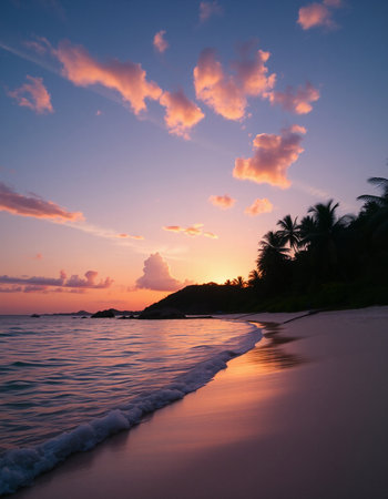 Tropical beach at beautiful sunset. Nature background
