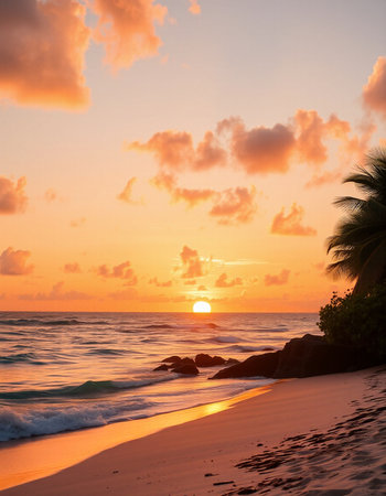 Beautiful sunset at the beach on the island of Seychelles
