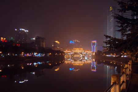 chengdu scenery of the anshun bridge at night, sichuan , China