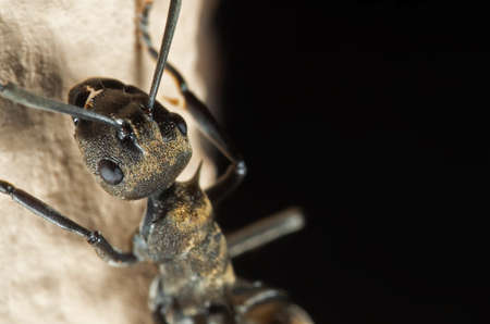 Macro Photography of Golden Weaver Ant on The Wall Isolated on Black Background