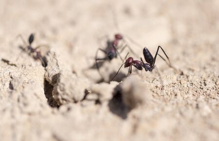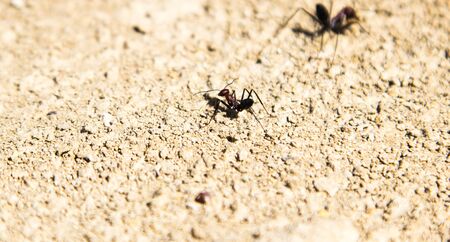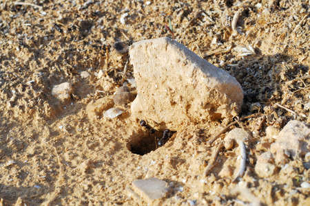 Black ants in desert near underground anthill