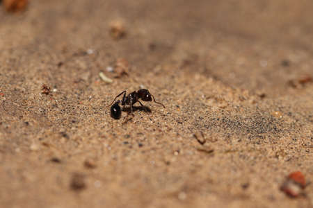 Ant on the sand. Close-up. Shallow depth of field