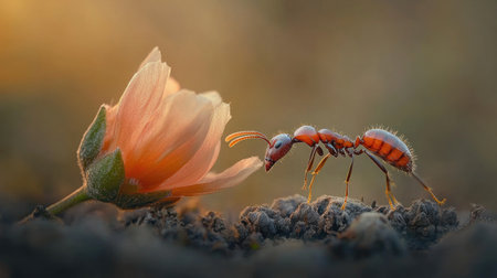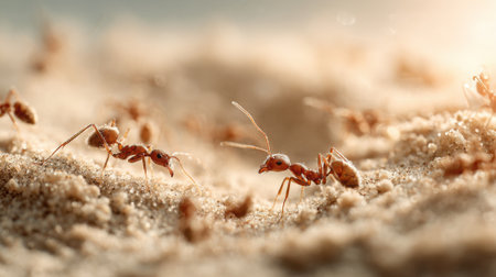Witness the awe-inspiring spectacle of red ants in their natural habitat, working together in a mesmerizing display of cooperation and unity This stunning scene showcases the incredible power of teamwork in the animal kingdom, as ants tirelessly collaborate to achieve a common goal AI Generative