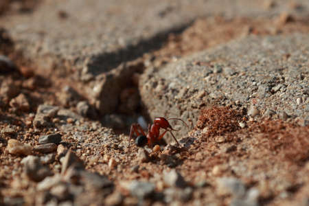 Macro Of Red Ant In Desert Landscape Scene