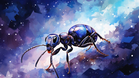 Digital painting of an ant on a starry night sky background.