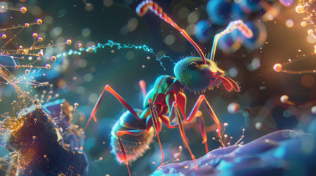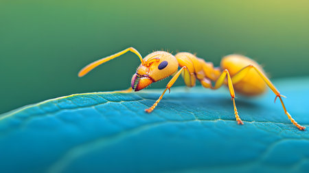 Experience a vivid close-up of an ant showcasing incredible detail in its texture and colors, revealing the fascinating world of insects with macro photography.