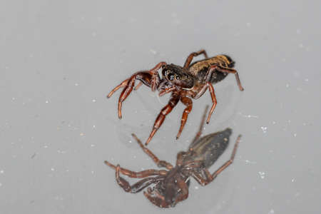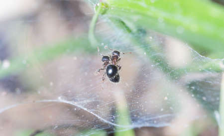Close-up of a six-eyed spider. It is a family of the true web spiders.