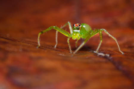 Close up a Chrysilla volupe on floor at home, Jumping spider missing leg, Colorful of spider in nature, Selective focus.