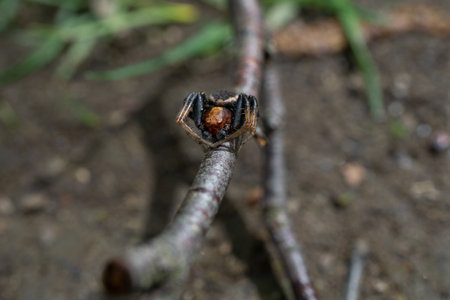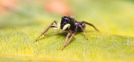 This is a macro photo of a spider. spider macro photo, jumping spider photo, close-up photo of spider.