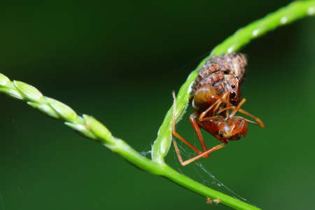 Adult Twig Ant of the Genus Pseudomyrmex stirring in bug eggs