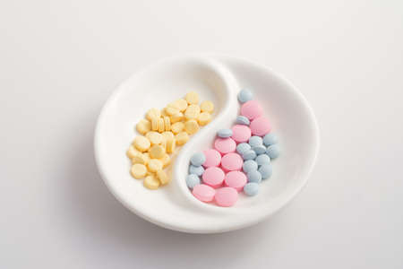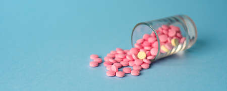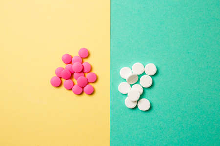 White and pink medicines on a colored double background