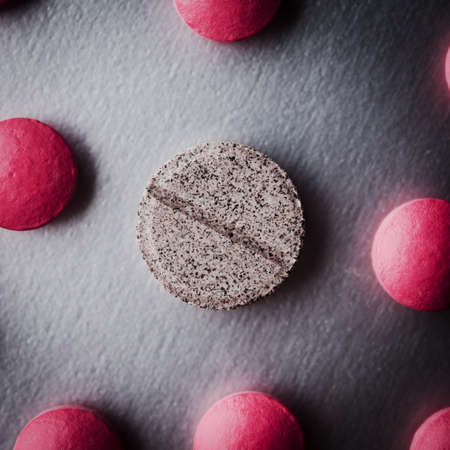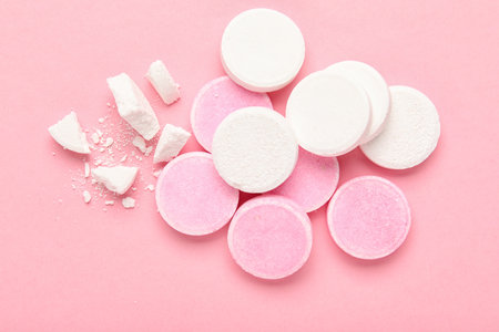 Soluble tablets on pink background