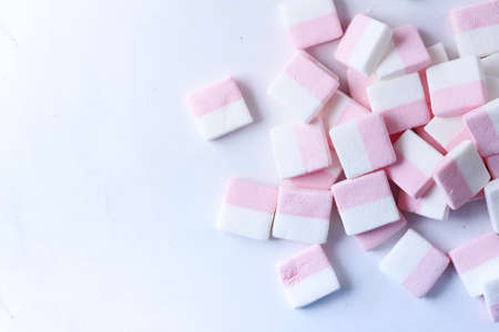 marshmallow candy on white background top view