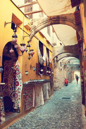 The ancient streets of the ancient city in Greece. Authentic alleys of Rhodes.