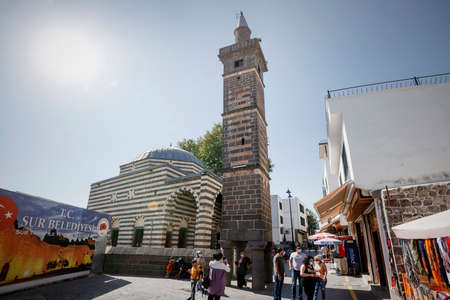 Sur, Diyarbakir / Turkey - November 2020: Sheikh Matar Mosque or Sheikh Mutahhar Mosque, best known for its unique minaret based on four columns, dubbed the Four-legged Minaret in Diyarbakir
