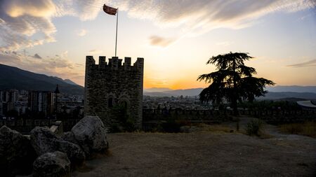 flag of Republic of North Macedonia at the Fortress of Skopje