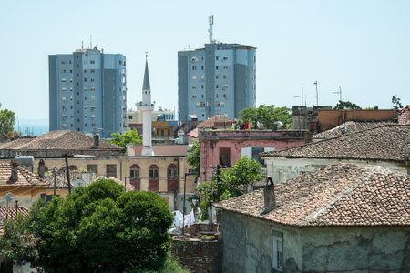 DURRES, ALBANIA, MAY 14, 2010 - Durres, ancient and modern up area with a minaret