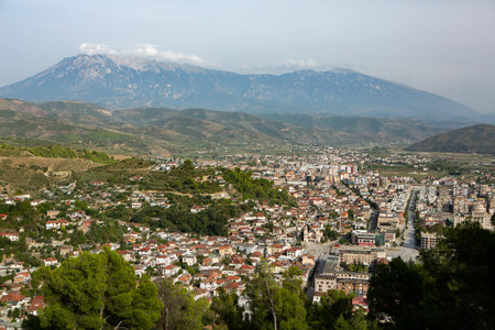 A view from the castle towards the center of the city of Gjirokaster, Albania in summertime. High quality photo