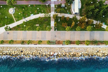 Limassol promenade or embankment aerial top view with palms. Beautiful mediterranean Cyprus city resort.