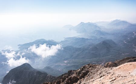 Beautiful view of the coast of Antalya and Taurus Mountains from the viewpoint of Tahtali Mountain, Turkey