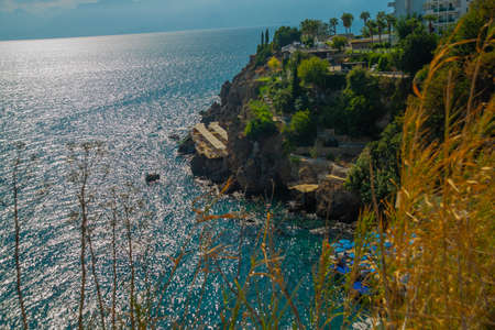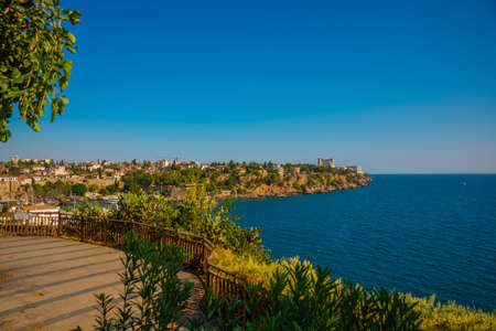 ANTALYA, TURKEY: Beautiful landscape with sea view in the Turkish city of Antalya on a sunny summer day. Antalya is Turkey's biggest international sea resort located on Turkish Riviera.