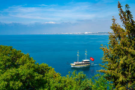 Antalya, Turkey. Sailing Ship For Sea Tours. Mediterranean landscape