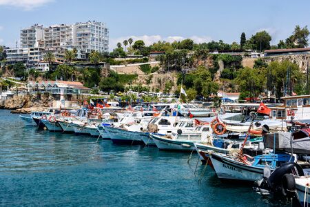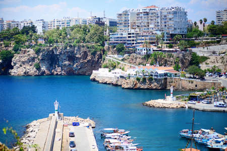 Awesome view of Old Antalya Marina in Kaleici. The Kaleici area is the historic city center and a popular tourist attraction in Turkey.