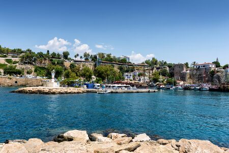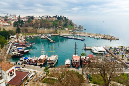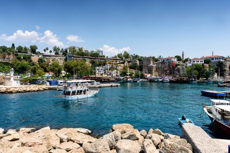 View of Old Antalya Marina in Kaleici. The Kaleici area is the historic city center and a popular tourist attraction in Turkey.