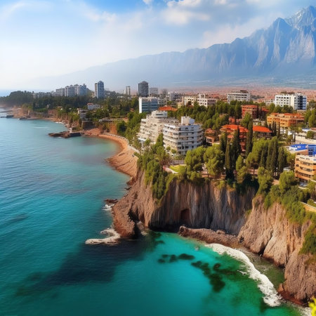 Awesome view of Antalya coastline. Antalya is a popular tourist destination in Turkey.