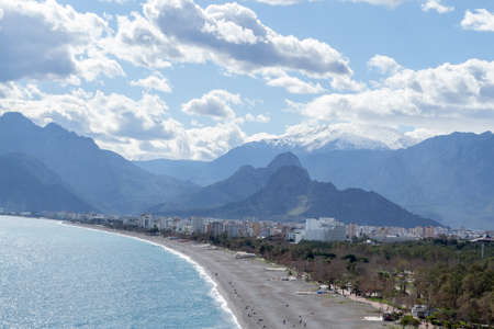 Panorama of Konyaalti beach and Antalya city from Tunektepe mountain, Turkey.