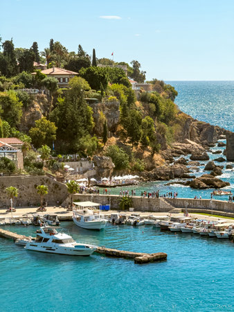 picturesque Mediterranean coast off Antalya. travel to turkey, old town Kaleci. discover interesting places and popular attractions and walks.