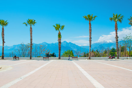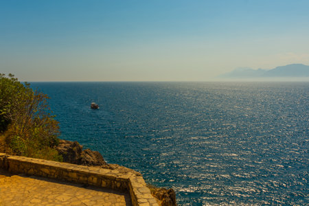ANTALYA, TURKEY: Beautiful Top view of the sea and the city from Ataturk Park on a sunny summer day in Antalya, Turkey.