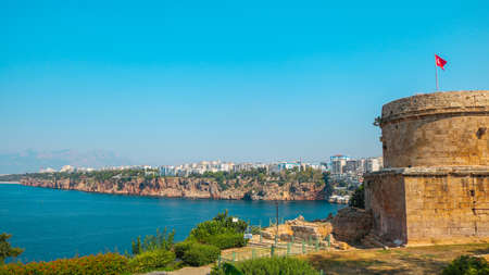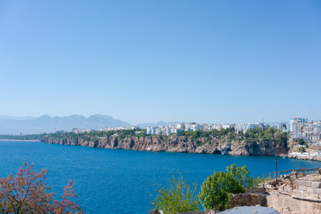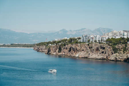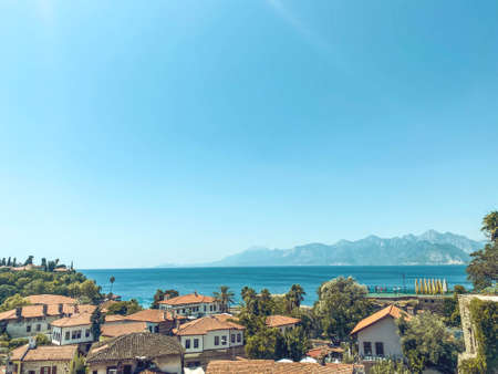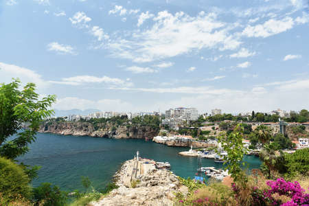 View of Antalya Turkey and the Mediterranean Sea. Panorama of Antalya in summer sunny weather. Turkish resorts, attractions and travel. high quality photo