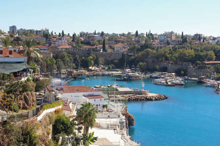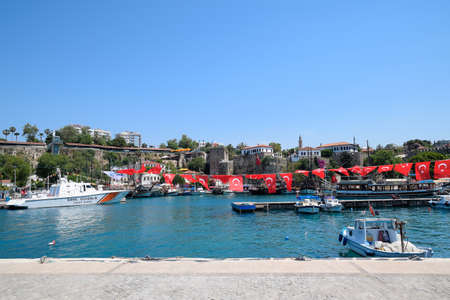 ANTALYA, TURKEY: The old harbor in Antalya and the port with ships and boats on a sunny summer day, Turkey.