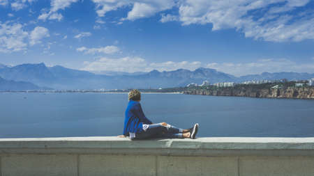 View of the Mediterranean sea from the old town on the mountain in Alanya. Holidays in Turkey, sightseeing.