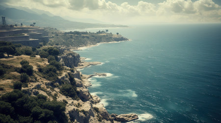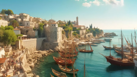 Generative AI : Beautiful view from the side of the ancient fortress on the port of the Mediterranean resort town of Alanya