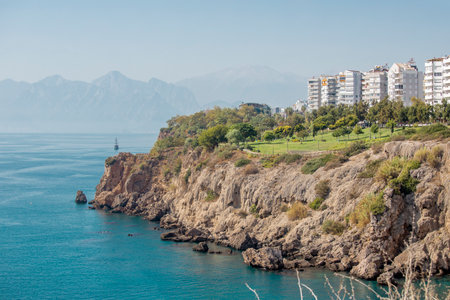 Sea shore and coastal cliffs in Antalya town in Turkey