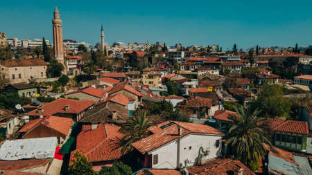 Old town Kaleici in Antalya, Turkey - travel background. Top view of the roofs of houses