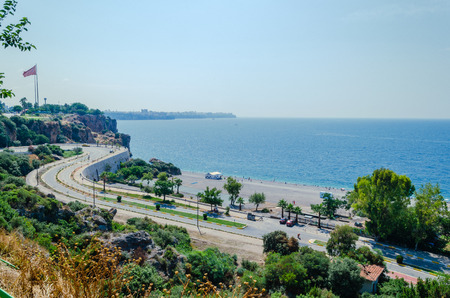 Panoramic view of the sea and the promenade in Antalya Turkey