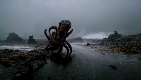 A Giant Octopus Lurks in the Stormy Depths